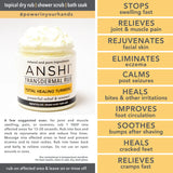 ANSHI supports a vibrant community who share their favorite ways to use our simple, natural products. Our customers suggest using ANSHI Total Healing Turmeric in these ways: to reduce swelling, joint or muscle pain, cramps, as a facial wash or mask, for toenail fungus reduction, for cracked feet, skin irritations, eczema, and as an eye cream, body scrub, foot scrub, and bath soak.